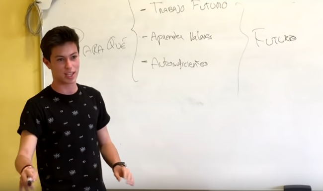En un vídeo grabado y difundido por un compañero suyo en su canal de Youtube, Álvaro explica la desmotivación que sienten los alumnos al llegar al ciclo de la ESO y los cambios que propone para formar con éxito a los trabajadores del futuro.