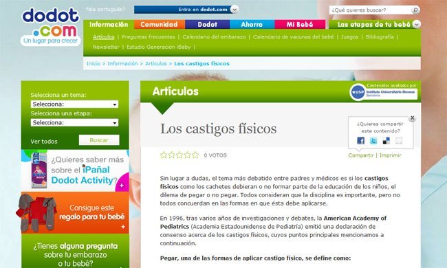Un día más (y van…) nos hacemos eco en Bebés y más de aquellas noticias o artículos en los que los niños corren riesgo de acabar mal parados (mal tratados), centrándonos en esta ocasión en un artículo que hemos podido leer en la web de una de las mayores empresas españolas relacionadas con la infancia, nada menos que Dodot.