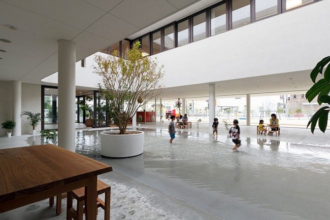 El edificio ha sido diseñado para que los niños puedan ser niños, comportarse como tales en libertad. Está claro, los japoneses saben como hacer escuelas infantiles.