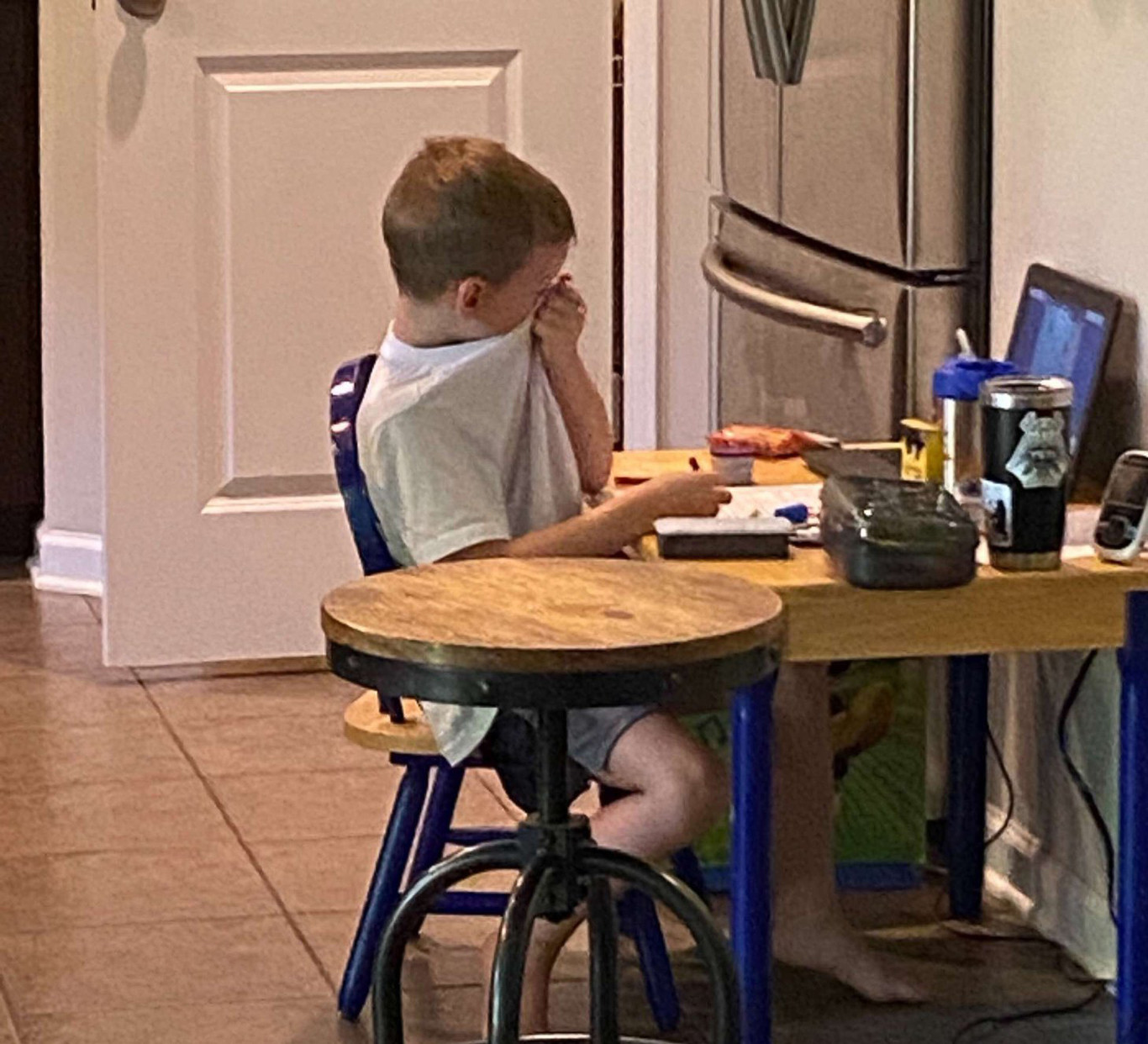 La imagen que hemos visto en portada, le ha dado la vuelta al mundo: un niño llorando durante una de sus primeras clases a distancia. La fotografía fue capturada por su madre Jana Coombs y publicada en redes sociales, para mostrar la realidad de muchos niños.