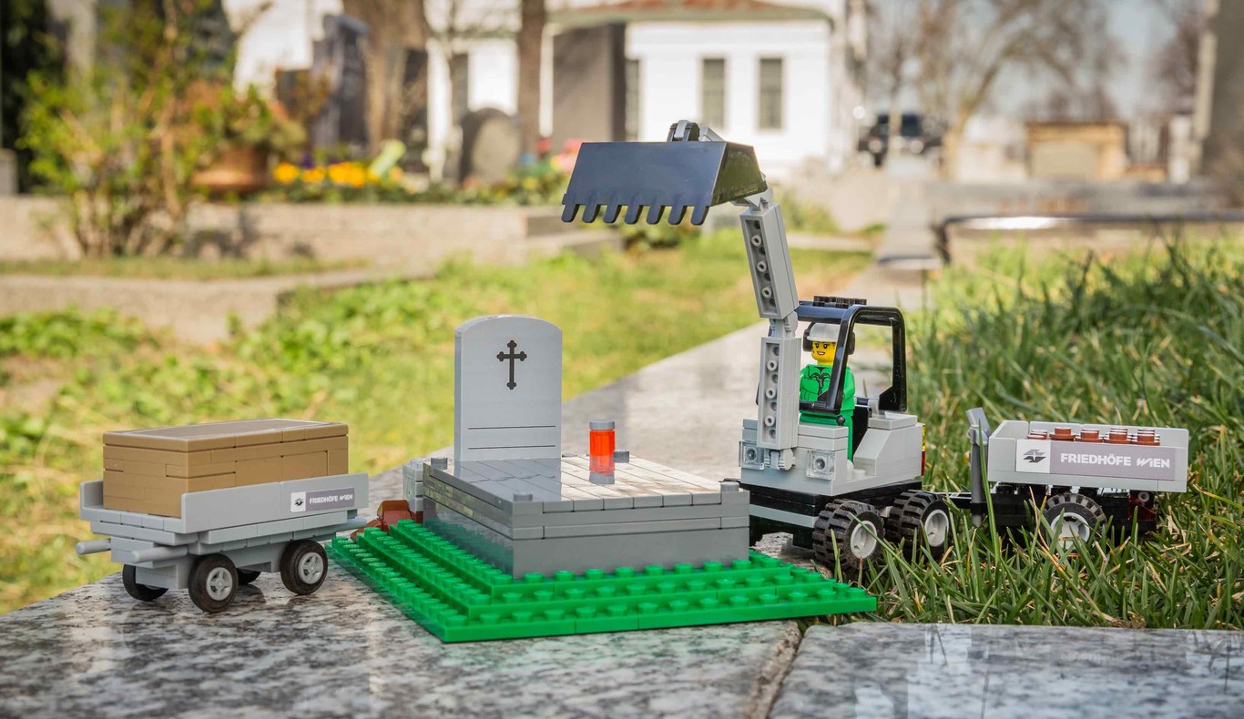 A primera vista puede parecer absurdo o incluso morboso: ¿un cementerio, un coche fúnebre o un crematorio de Lego para que los niños los construyan?