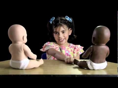 El experimento se lleva a cabo con un muñeco blanco a un lado y un muñeco negro al otro y entonces se les pregunta a los niños “qué muñeco es bonito y cuál es feo”, respondiendo la mayoría de niños que el bonito o bueno es el blanco y que el feo o malo es el negro. Además les preguntan por qué les parece malo el negro, y ellos se basan simplemente en el color: “es malo porque es negro (o marrón)” y “es bueno porque es más blanco”.
