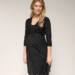 Vestido túnica en gasa con manga corta con transparencias y drapeado frontal de Topshop Maternity, por 55 euros. Un vestido ideal para una fiesta de noche, los little black dress siempre son un acierto.