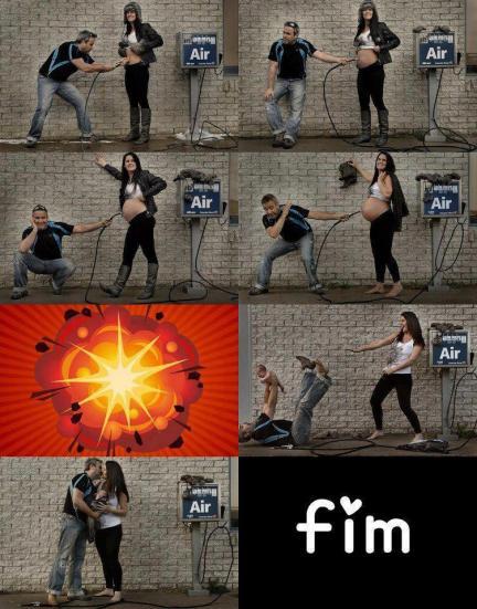 Las más bonitas imágenes, las del final, cuando por fin ha llegado el bebé y los ilusionados padres lo tienen en brazos tras la explosión. Desde este enlace podéis ver las fotografías con todo detalle. Me ha parecido un montaje del embarazo original y gracioso, espero que también os guste este verdadero “baby boom”…
