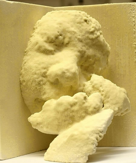Por cierto, que no he logrado encontrar ninguna imagen del resultado final en bronce, ya que sólo se nos muestra el molde anterior. Y vosotros, ¿pagaríais por un recuerdo así, u os conformáis con las tradicionales ecografías?