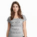 Camiseta de manga corta y de estilo ligeramente largo en tejido gris jaspeado a rayas, cuello redondo y frase escrita en la parte delantera en color negro de H&M, por 14,99 euros. Puedes conjuntar la camiseta con unos jeans negros o con una falda tubo.