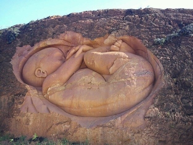 Desde 2012, una escultura de un bebé en el vientre materno realizada por el artista Dubian Monsalve Torres, se encuentra en una montaña en un pequeño poblado del municipio de Santo Domingo en Antioquia, Colombia. Este precioso homenaje a la vida fue realizado únicamente con herramientas de los campesinos y le tomó 15 días en terminarla, debido al clima húmedo y lluvioso.