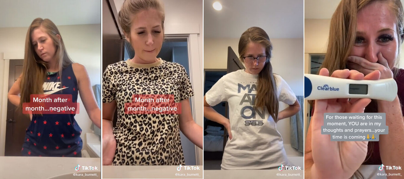 Publicado en su cuenta de TikTok, el vídeo muestra a Kara Burnett Giugliano de 29 años haciendo lo que millones de mujeres hacen cuando están buscando un bebé: esperando el resultado de la prueba de embarazo.
