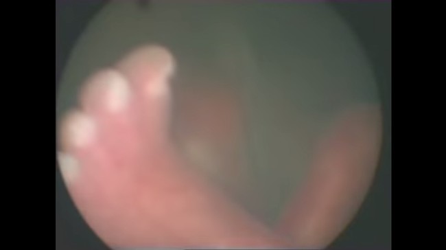 La micro cámara "viaja" dentro del útero para mostrarnos imágenes espectaculares de los bebés con 22 semanas de gestación. A estas alturas del embarazo, (20 semanas desde la concepción) el bebé mide aproximadamente 27 centímetros y pesa casi 500 gramos.