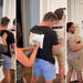 Colocándonos uno detrás de otro, vamos dibujando sobre su espalda las letras que deseamos que adivinen hasta que formen una palabra o frase. En este caso usaron hojas y rotuladores pero igualmente se puede hacer trazando las letras con el dedo.