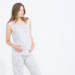Para dormir, la firma apuesta por crea camisones cortos de algodón en tonos blancos, azul cielo o gris claro. Estos camisones llevan detalles de encaje, nido de abeja o acabados jaspeados. Para la lactancia hay camisones de tirantes con abertura en el tirante. Si prefieres un pijama hay modelos de pantalón largo con goma adaptable a la cintura y camisola con ajuste en la cintura. Otro modelo muy bonito es un pijama largo con camiseta jaspeada con manga corta de encaje y pantalón a juego.