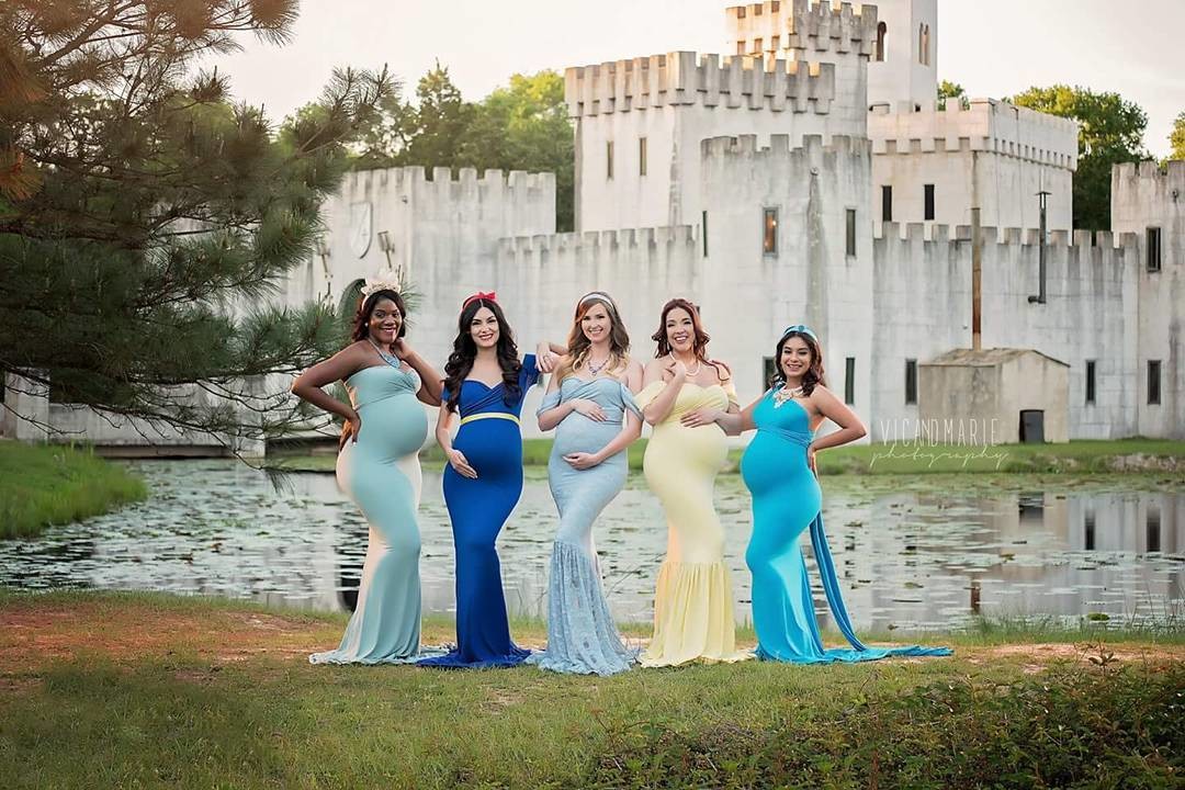 Bella, Blancanieves, Cenicienta, Jasmine y Tiana. Cinco embarazadas que parecen salidas de una película Disney fueron las elegidas por los fotógrafos para esta bella sesión conjunta.