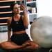 Podemos verla sentada sobre una pelota de pilates con las manos en su vientre realizando una serie de respiraciones conscientes guiada por su entrenadora.