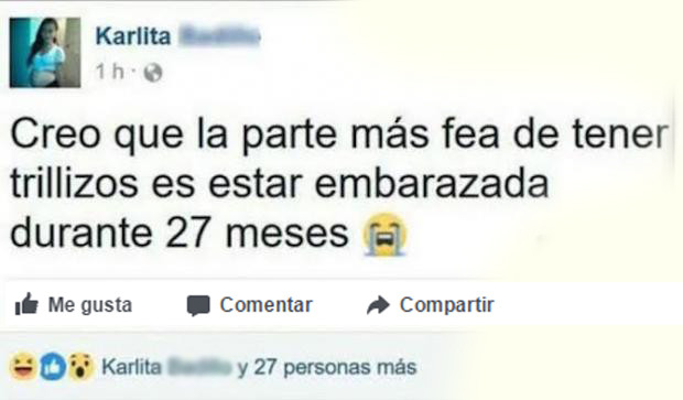 Ese mínimo que te permita explicar en las redes sociales lo que va a pasar, lo que sientes, cómo lo vives, y recibir el apoyo de quienes te siguen, por ejemplo. Y es que de vez en cuando lees cosas que te dejan sorprendido, y te hacen sufrir más por el bebé (en este caso bebés) que por la propia persona que lo escribe. Hablo de una mujer, embarazada de trillizos, que dijo que lo que peor iba a llevar era lo de estar embarazada durante 27 meses.
