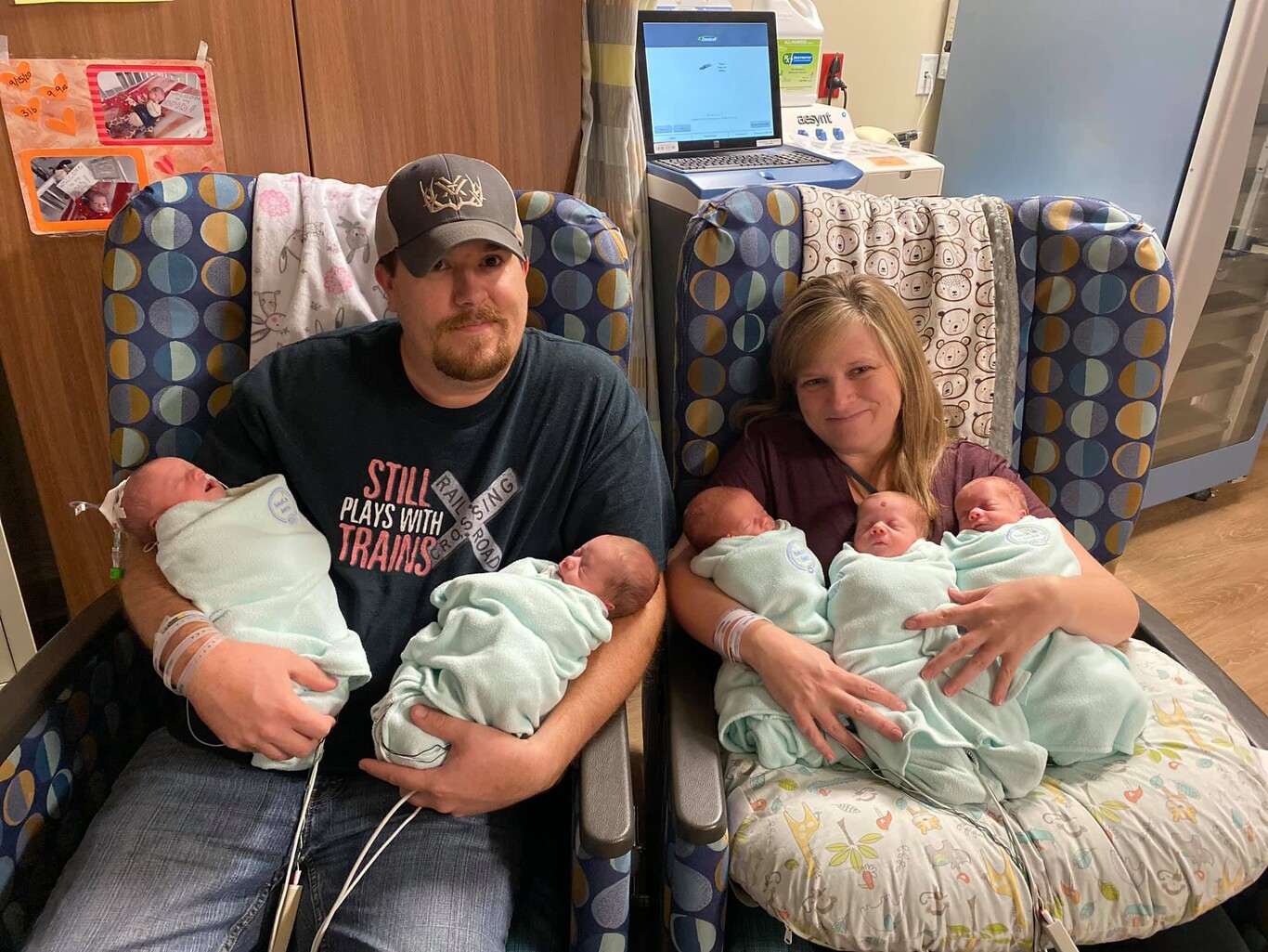 Joshua y Megan Hulen sabían que deseaban tener tres hijos, y como ya tenían a Jacob y Matthew de siete y dos años respectivamente, esperaban que su tercer embarazo les trajera finalmente una niña. Pero para su suerte, no solo tuvieron una niña, sino cuatro y un niño más, pues este último embarazo resultó ser múltiple.