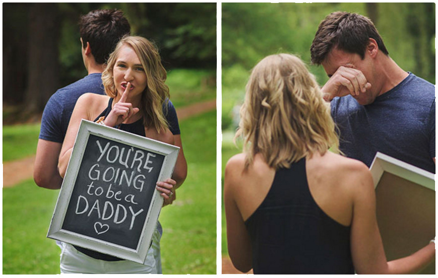 En esta ocasión, tal y como leemos en Bored Panda, la mujer quiso sorprender a su marido durante una sesión de fotos al escribir en una pizarra el mensaje que él menos esperaba: "Vas a ser papá".