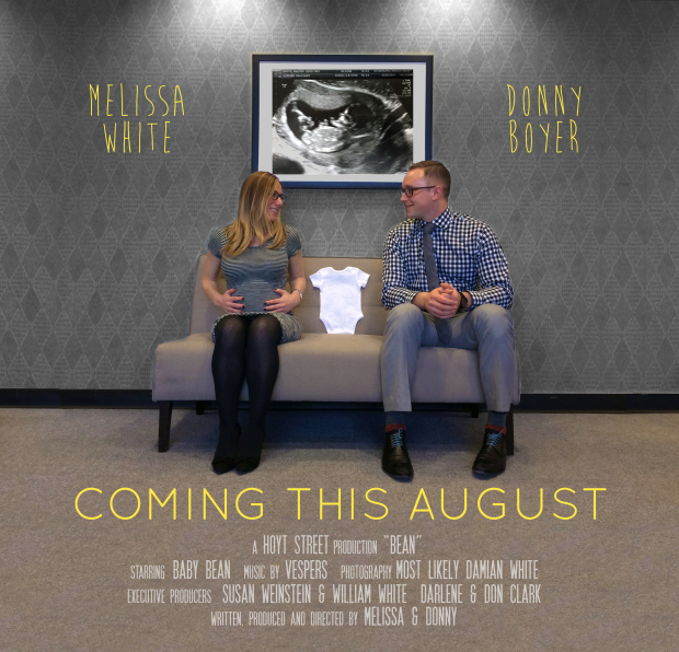 A veces la sencillez es una manera preciosa de dar un mensaje. Los futuros padres se dan un beso mientras sostienen el mensaje que debe llegar a los demás.