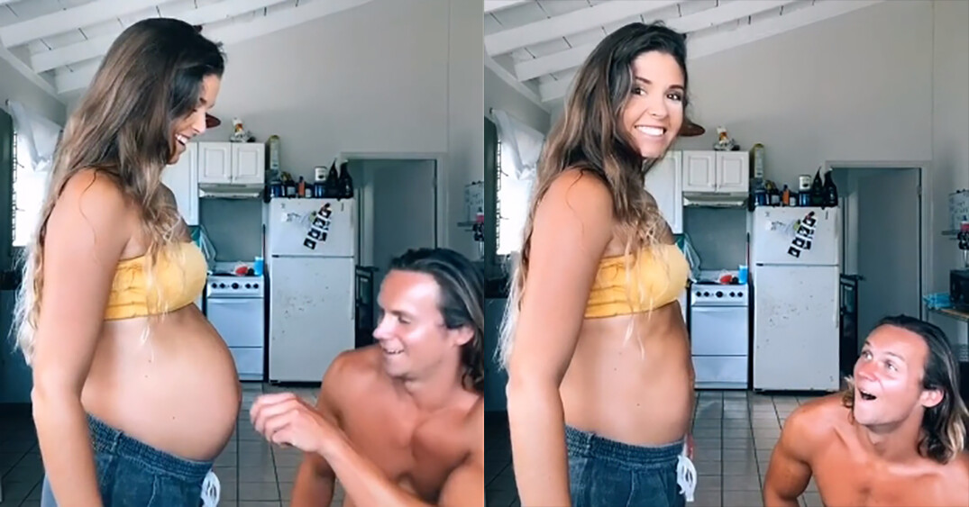 A través de su cuenta de TikTok, Megan compartió el pequeño vídeo en el que aparecen ella y su esposo en casa, donde él simula quitar un tapón del ombligo de ella, tras lo cual comienza a "deshincharse" la barriga.