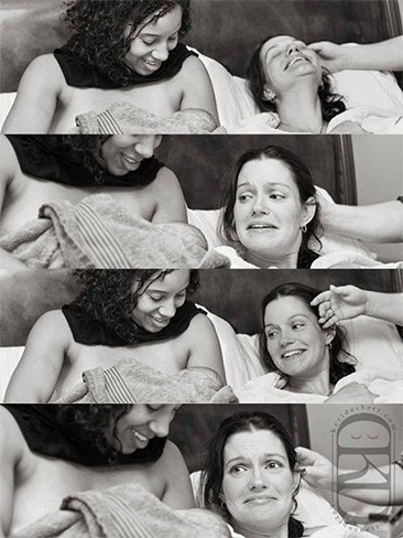 En la foto de arriba tenéis la imagen de una mujer que acaba de dar a luz (Logan, la de la derecha) y otra que toma en brazos al bebé del que es madre, pero que no ha gestado. Es una historia de la que ya os hablamos en su momento, pero que se resume en la alta probabilidad de tener un embarazo muy dificultoso por parte de la una y la oferta de su mejor amiga de gestar por ella a su bebé.