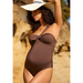 Bañador en un favorecedor marrón de escote asimétrico de un sólo tirante. Ideal.
