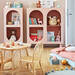 Esta librería divertida y práctica incluye dos estantes para organizar juguetes, objetos de decoración y cuentos y compartimentos ocultos tras 2 puertas para albergar secretos y tesoros del día.