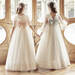 Vestido de comunión fantasía, en tul topos y puntillas aplicadas de largo midi, con fajín en tul liso. Un modelo de escote redondo, espalda semi-transparente y manga corta. Un vestido de Aire Barcelona.