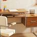 Escritorio infantil de madera de doble altura con un cajón en el lateral y estante inferior en la base. Está hecho con madera de caucho y hierro.