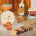 Instrumentos de madera en colores empolvados y realizados con muchos detalles. Piano, guitarra y tambores. Su precio oscila entre los 25,99 euros y 59,99 euros.