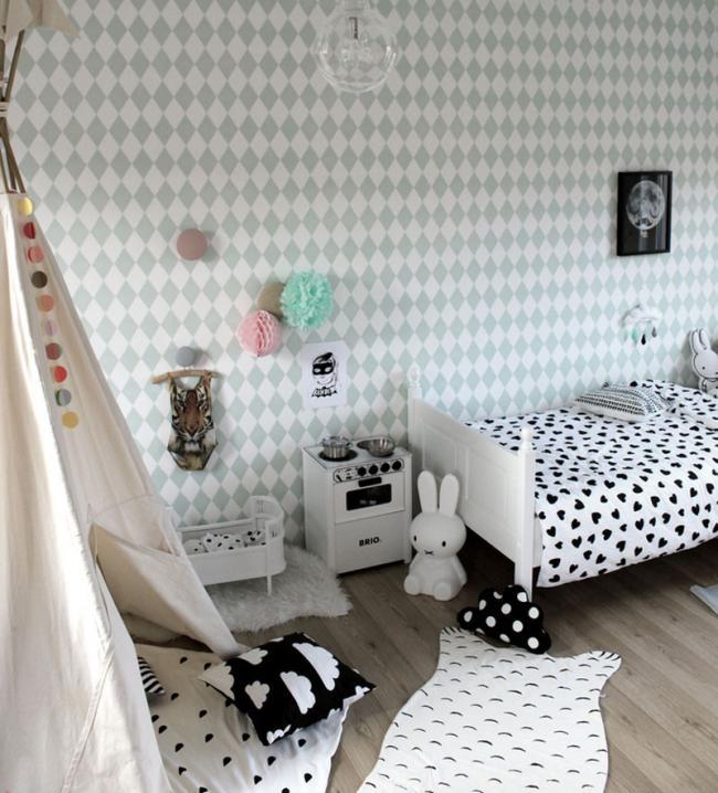 Las paredes son muy tentadoras, creo que si tienes claro la pared, el resto viene solo, decide si quieres algo masculino colores más oscuros y saturados, si buscas algo más de superhéroe colores vivos y con motivos, algo más romántico colores pastel y motivos florales, algo más clásico con papel de pared estampados o algo más nórdico con con dibujos y figuras geométricas muy gráficas.