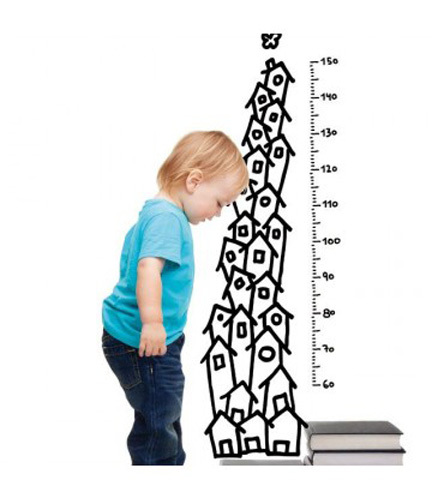 Por eso me ha encantado este precioso vinilo medidor con forma de torre de casitas que además resulta de lo más decorativo para la habitación infantil.