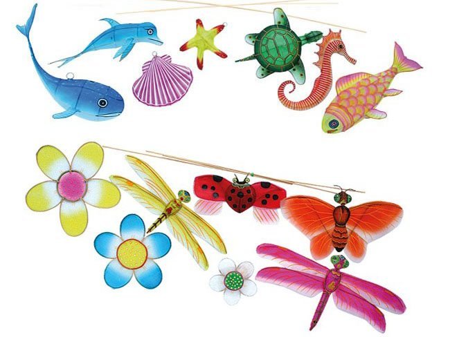 Podemos encontrar, entre otras cosas, algunos modelos de móviles súper coloridos para colocar encima de la cuna del bebé, los cuales seguramente llamarán su atención. Son todos muy bonitos, hay varios diseños, pero os enseño los que más me han gustado: uno de animales del mar y otro de mariposas y flores.