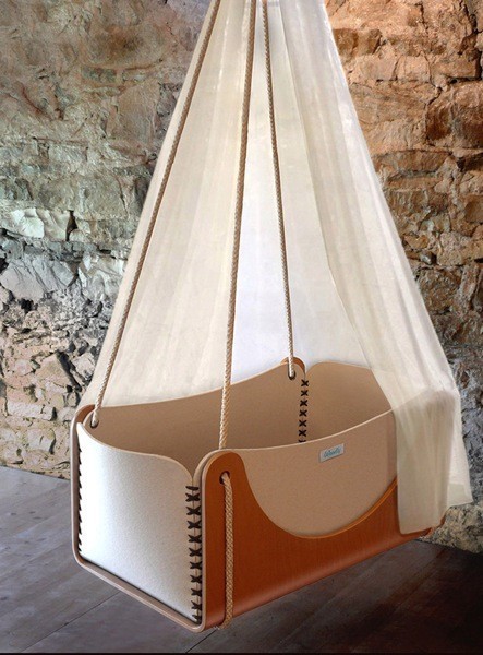 Hace unos días te ofrecíamos la posibilidad de hacer tú misma una cuna colgante de tela. En esta ocasión queremos enseñarte Roll, una cuna colgante ecológica realizada con una combinación de materiales muy original: madera y fieltro de pura lana para los dulces sueños del bebé.
