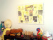 En la habitación de jugar tienen mesas bajitas con sillas enanas, para ellos. Tienen los vasos de plástico en los estantes bajos de un armario de la cocina, y el agua está también baja, para que puedan cogerla cuando quieran y para que se la sirvan, y si aún no se la saben servir, tienen botellitas pequeñas a su alcance. El papel de cocina está en un armario de abajo, para que limpien en caso de que se les caiga algo.