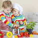 Seguramente en vuestras primeras sesiones juntos en la cocina acabaréis embadurnados en harina, llenos de salsa de tomate o con churretes de sustancias pringosas por todas partes. ¡Y eso está genial! No se trata de acabar limpitos, sino de enseñarles a disfrutar cocinando.