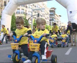 Ha sido divertido verlos en las noticias pedalear todos a una, unos con más pericia que otros. Es curioso, tantos niños juntos sobre ruedas, tan pequeñitos y ya con afición deportiva.