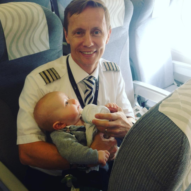 ¿Qué hace un piloto dándole un biberón a ese bebé? ¿Es su hijo? ¿Se lo ha llevado al trabajo? Es lo que podríamos pensar al ver la foto, pero nada más lejos de la realidad. Es el bebé de una pasajera, que no podía cuidar de todos sus hijos a la vez.