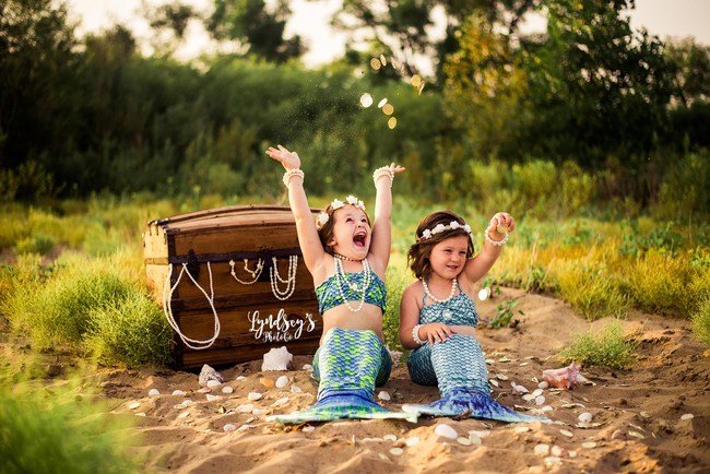 Bri Grulkey es madre de Sophia y Haidyn Grulkey, dos niñas de cinco y cuatro años que aman las sirenas. Un día se le ocurrió que sería divertido hacer una sesión de fotos con sus pequeñas disfrazadas de sirenas. Comenzó a buscar colas de sirenas para comprarlas y contactó a su amiga fotógrafa Lyndsey Wright, de Lyndsey’s Photo Co.