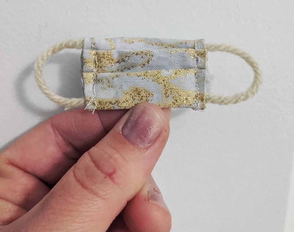 Y así fue como en una noche, madre e hija prepararon juntas la miniminimascarilla. Evolette eligió el color de la tela, el brillo dorado de polvo de hadas y la protección interior, y Kayla se puso manos a la obra.