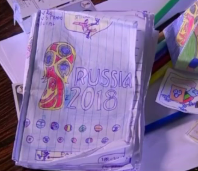 Sin embargo, esto no ha sido impedimento para Pedro, quien con mucha imaginación, papel y lápiz ha fabricado su propio álbum para disfrutar, como todos los demás niños, del mundial de Rusia 2018.