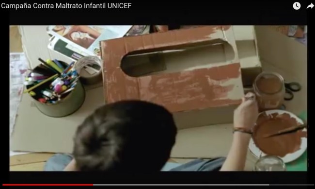 El segundo vídeo también es de UNICEF y nos muestra cómo un niño que sufre maltrato desea desaparecer, desea ser un mueble para no ser víctima de la violencia que sabe que le espera cuando su padre llega a casa. Parece que esté jugando tranquilamente en su habitación, pero al final comprendemos que está en una situación que también viven cada día miles de pequeños en el mundo: niños que juegan a ser invisibles.