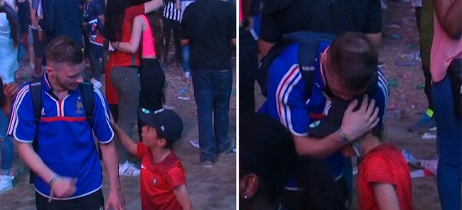 Y en ese momento, cuando lo más lógico habría sido que otro francés le diera consuelo, un niño con la camiseta de Portugal se le acercó para darle ánimos: