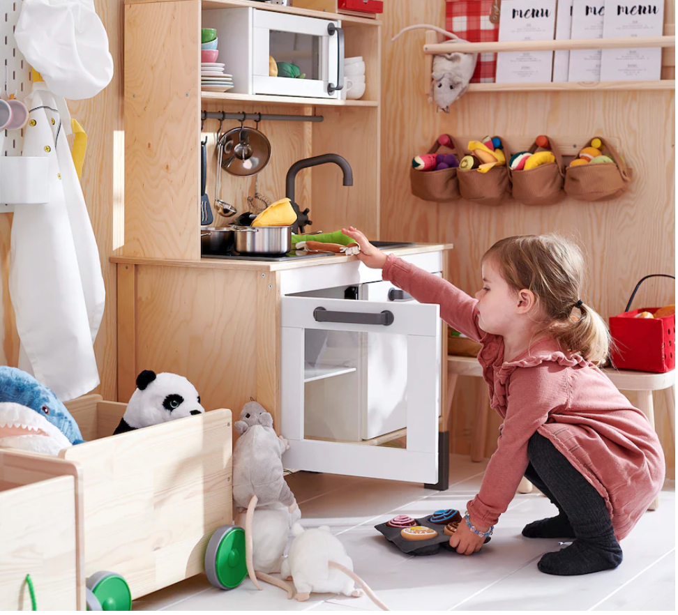 Los niños pueden aprender jugando por eso Ikea apuesta por juguetes clásicos de madera, peluches, cocinitas, bloques para hacer construcciones… opciones sin tecnología perfectas para fomentar la imaginación y creatividad e incluso para desarrollar el pensamiento y la psicomotricidad.