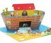 Con un panel de juego que representa el agua y la orilla, junto al set de 14 figuritas que representa a Noé, su mujer y distintas parejas de animales, es un juguete para imaginar muchas aventuras. El barco además es una verdadera arca con la gran puerta que se abre para que pasen los animales.