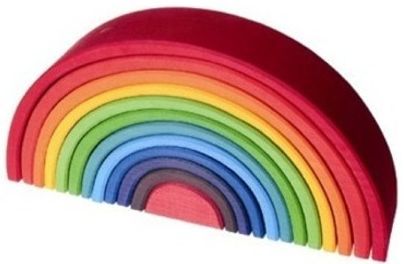 Este precioso arco iris puede ser cualquier cosa: un arco iris, puentes, un puzzle, balancines, recintos para los animales… cualquier cosa que los pequeños quieran soñar. A mi me ha parecido que pueden servir para nuestros hijos desde que son bebés hasta que son mas mayorictos, durante años.