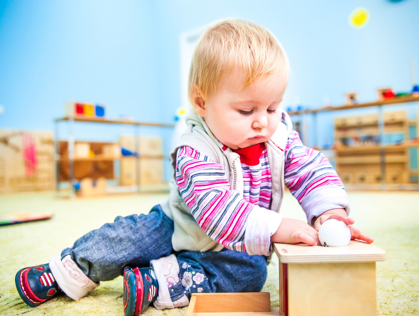 Con la caja de permanencia Montessori el niño trabaja este concepto, aprendiendo que aunque introduzca el objeto por el agujero de la caja y deje de ser visible, sigue estando ahí y es posible recuperarlo.