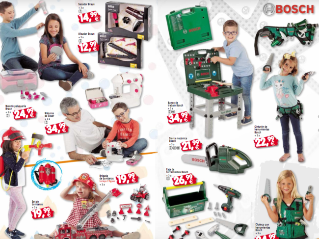 Las páginas de este catálogo rompen con los estereotipos de género y con los roles tan marcados que, sin darnos cuenta, vamos perpetuando e inculcando a nuestros hijos a través del juego.
