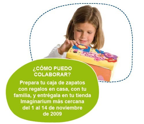 Los niños tienen que decorar una caja de zapatos en la que meterán el juguete o juguetes, especificando si es para niño o niña, y llevarla a Imaginarium entre el día 1 y el 14 de Noviembre.