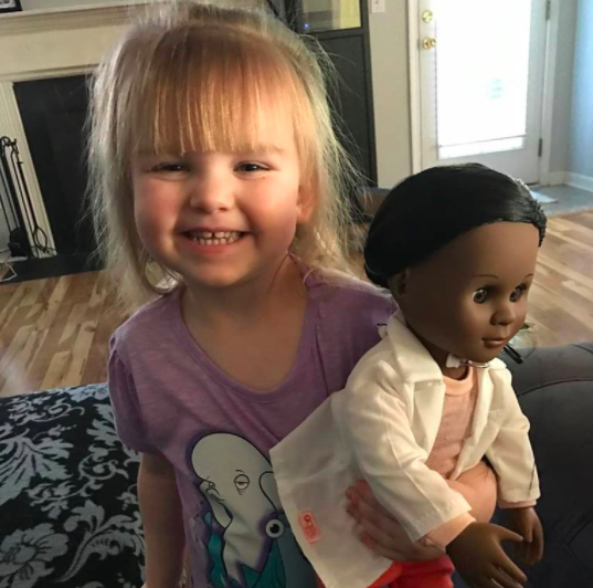 Su madre, Brandi Benner, publicó lo sucedido en su perfil de Facebook junto a una foto de la niña con su muñeca negra en brazos y una enorme sonrisa en su cara con el siguiente mensaje: