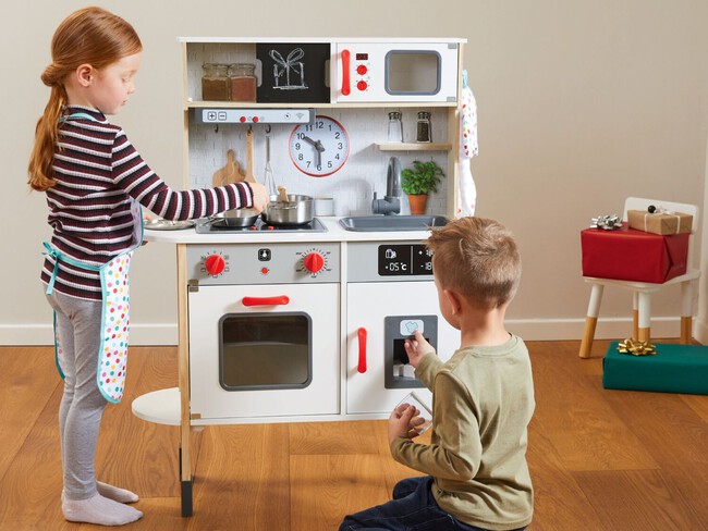 Esta cocinita recomendada para niños y niñas a partir de 3 años es regulable en tres posiciones para poder seguir utilizándola a medida que el niño crece. Cuenta con compartimentos como microondas, frigorífico, placas de cocina, regulador de temperatura, campana extractora, grifo... Su precio, 54,99 euros.