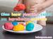 4. Una vez esté fría, la separamos en distintas bolas y ponemos un poco de colorante con la ayuda de un palillo de madera en cada una.